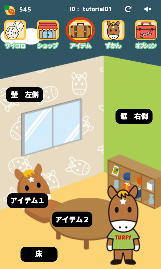 「お部屋にいてもらう」を選ぶとお部屋にいるターフィーが変わるよ。