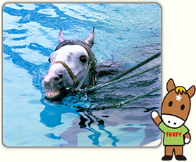 大人のオスのウマは12本の前歯と4本の犬歯、24本の奥歯があり合計40本。 メスは犬歯がないので36本です。ウマは前歯と奥歯のあいだに歯がないので、ここにハミという道具をいれます。ちなみにヒトは32本、イヌは42本です。