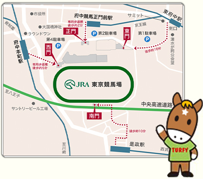 3歳馬の頂点を決めるレース「日本ダービー」などが行われる東京競馬場は、東京都府中市にあります。なお、1933年に府中に移る前は、現在の東京都目黒区に東京競馬場はありました。