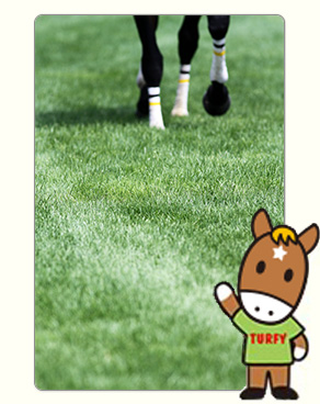 芝のことを英語でターフ(turf)といい、ターフィーの名前の由来になっています。砂のことはダート(dirt)と言って、競馬場には芝のコースと砂のコースの2種類があります。