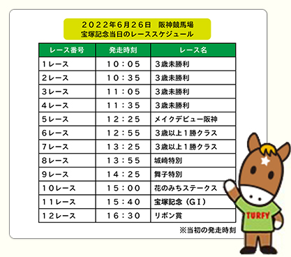 最初のレースは10時前後、最終レースは16時台に行われます。JRAの競走は日の出から日没までの間に行わなければならないことになっています。