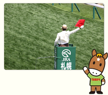 レースの発走態勢に入ることを知らせるため、スターターは赤色の旗を振ります。